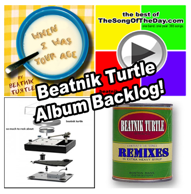 We're proud to say our latest album, "When I Was Your Age" is officially out in finer digital stores near you (iTunes, CDBaby, and more)."When I Was Your Age" is an entire album of upbeat Beatnik Turtle geek-rock that looks back to when we were kids -- back when phones were attached to walls and video games were nothing but dots and lines. You know, songs about eating cereal, going to school, getting bullied, and wondering "are we there yet?".